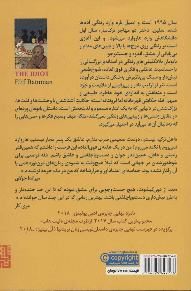 در آخر چیزی که ابله ِیک رماننویس کمتر آشنا را به رمانی ماندگار تبدیل میکند، بهتصویرکشیدن نوعی از علاقه و دوستداشتن است که با ناتوانی از ابراز احساسات به القای حسی از درماندگی دامن میزند و مهر تأییدی بر نقش مهم زبان در ایجاد یک رابطهی عاطفی میگذارد. این حس، حسی است که در جایجای داستان به چشم میخورد و نویسنده بهخوبی توانسته با خلق لحظاتی در طی داستان آن را به خواننده منتقل کند.